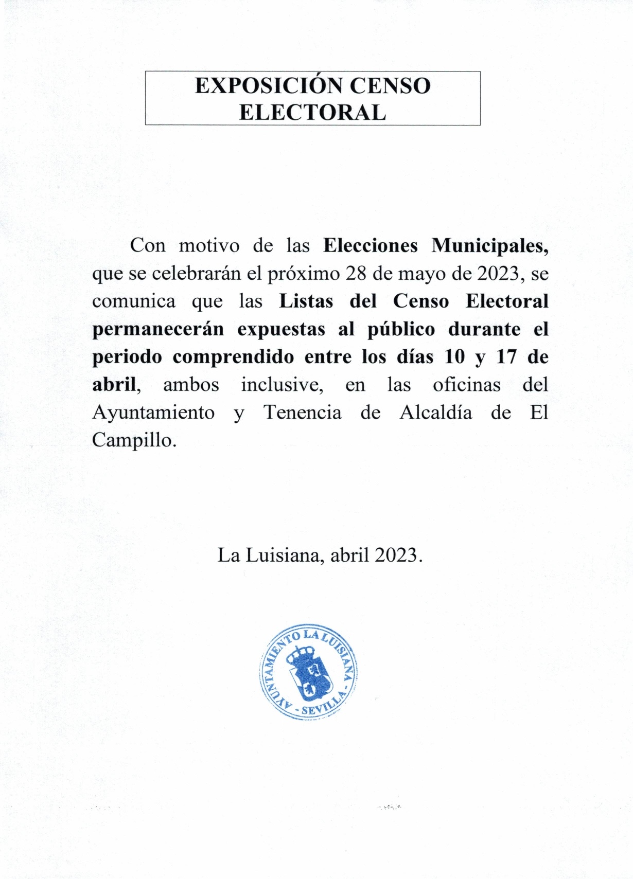 La Diputación de Sevilla financia con 50.000€ a La Luisiana y El Campillo en diversas actuaciones culturales